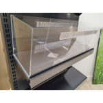 Bac plexiglass avec deux séparateurs à poser sur une tablette de gondole