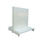 Les gondoles doubles faces sont utilisées pour présenter des produits sur tablette ou sur broches (avec des fonds perforés).